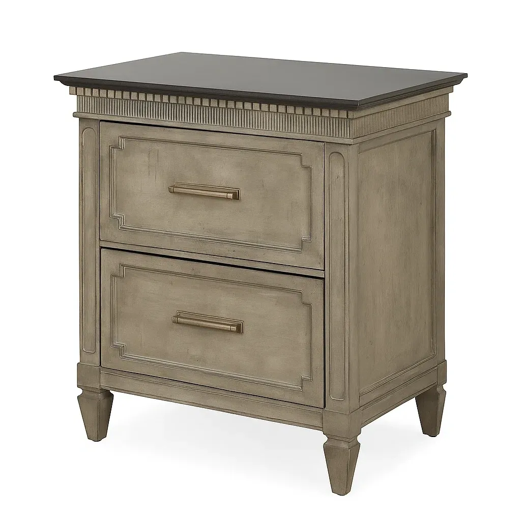Matériaux: bois massif, plateau en bois peint, poignées en alliage de zinc